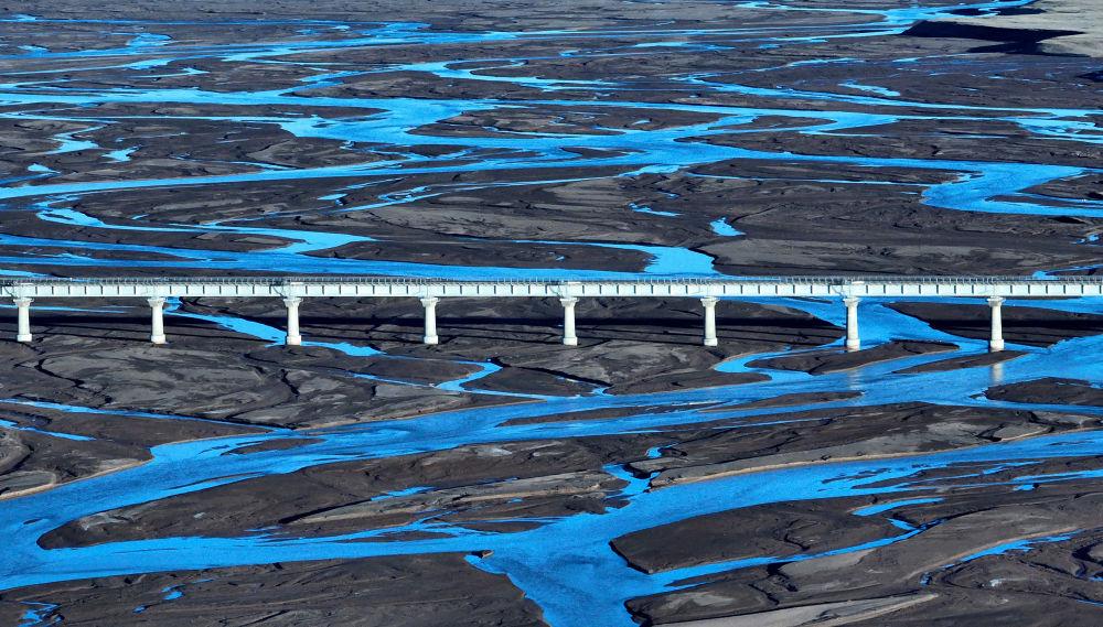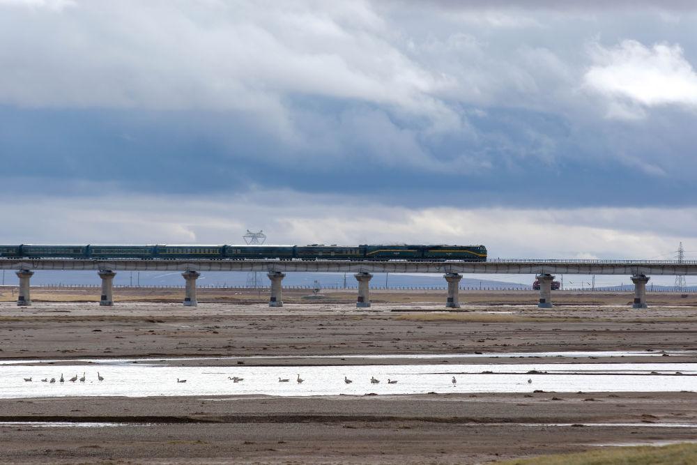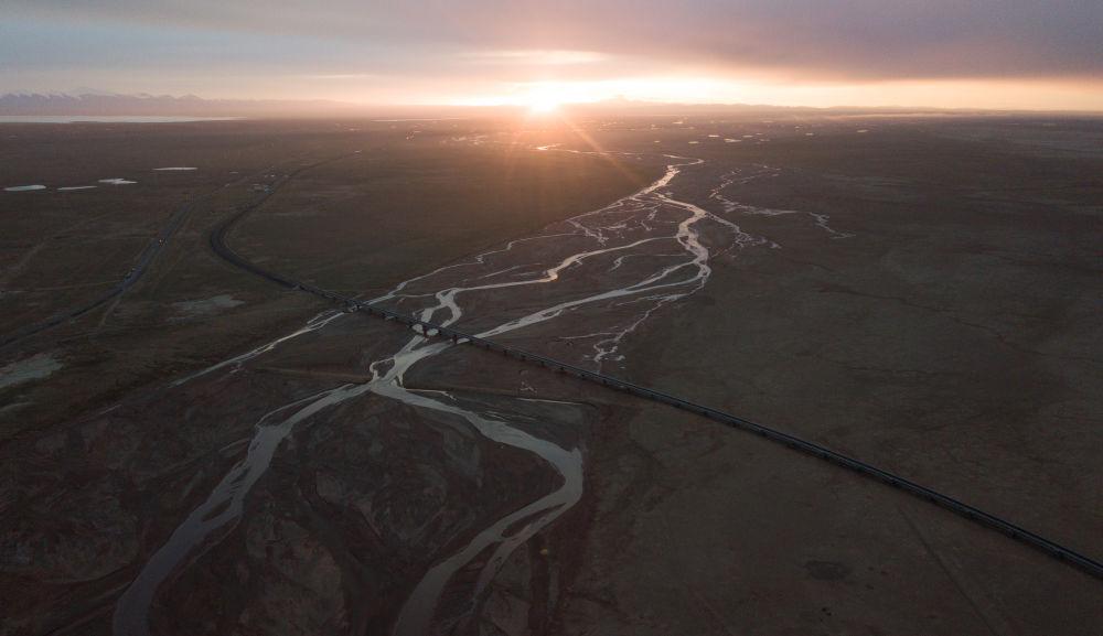 6月16日,一列火車經(jīng)過(guò)長(zhǎng)江源地區(qū)的楚瑪爾河。