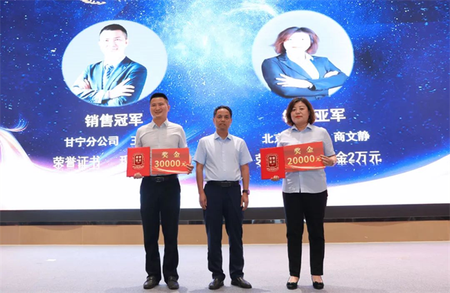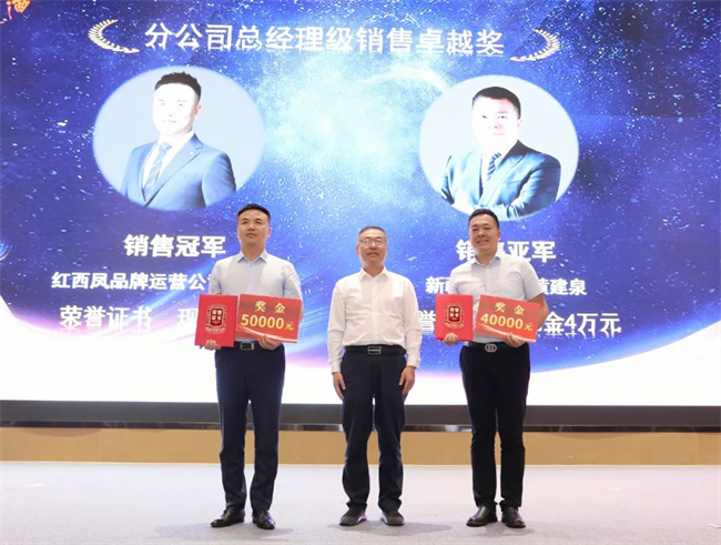 郭拴新為銷售卓越獎(jiǎng)獲得者頒發(fā)榮譽(yù)證書與獎(jiǎng)金