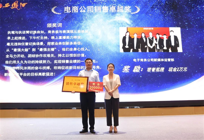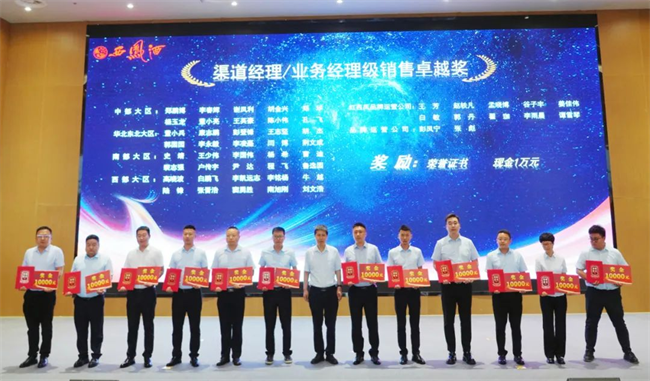 西鳳股份公司財(cái)務(wù)管理部部長(zhǎng)陳宏利為業(yè)務(wù)經(jīng)理銷售卓越獎(jiǎng)獲得者頒發(fā)榮譽(yù)證書與獎(jiǎng)金