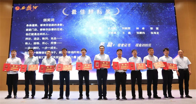 西鳳股份公司市場(chǎng)管理部部長(zhǎng)齊紅軍為最佳耕耘獎(jiǎng)獲得者頒發(fā)榮譽(yù)證書與獎(jiǎng)金