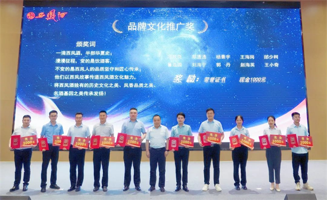 西鳳股份公司品牌管理部部長(zhǎng)姜承輝為品牌文化推廣獎(jiǎng)獲得者頒發(fā)榮譽(yù)證書與獎(jiǎng)金