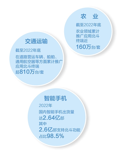 從北斗一號(hào)到北斗三號(hào),從覆蓋亞太到服務(wù)全球,作為重要的新型基礎(chǔ)設(shè)施,北斗系統(tǒng)深度賦能各行各業(yè),成為經(jīng)濟(jì)社會(huì)發(fā)展的時(shí)空基石。2022年,我國(guó)衛(wèi)星導(dǎo)航與位置服務(wù)產(chǎn)業(yè)總體產(chǎn)值超過(guò)5000億元,產(chǎn)生顯著經(jīng)濟(jì)效益。