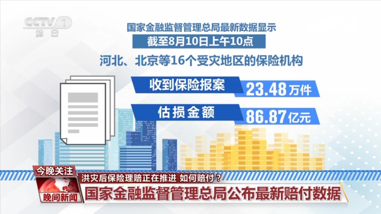 國家金融監(jiān)督管理總局最新數(shù)據(jù)顯示,截至8月10日上午10時,河北、北京等16個受災(zāi)地區(qū)的保險機(jī)構(gòu)收到保險報案23.48萬件,估損金額86.87億元;目前已賠付案件9.23萬件,賠付金額8.31億元。