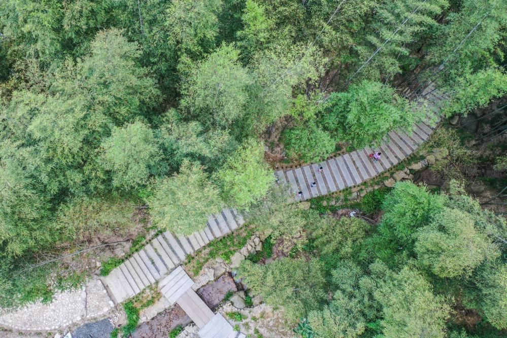 近年來,藍(lán)山縣打出一套“組合拳”,優(yōu)化營商環(huán)境,加強(qiáng)基礎(chǔ)設(shè)施建設(shè),支持民營企業(yè)發(fā)展,讓企業(yè)放心投資文旅產(chǎn)業(yè)。在藍(lán)山谷景區(qū),當(dāng)?shù)卮迕裾涌煊尾降?、石拱橋等建設(shè),為即將到來的賞楓旺季做準(zhǔn)備。