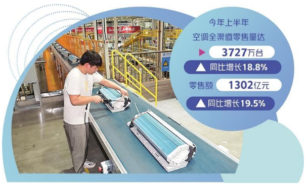 今年上半年,空調(diào)產(chǎn)品銷售量、銷售額增長均在19%左右,為整個(gè)家電行業(yè)增長最好的品類。