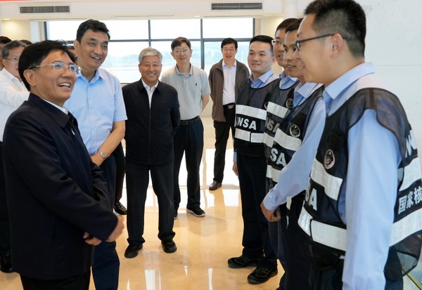 隨后,孫金龍深入到核電機組項目一線調(diào)研,實地查看3、4號機組工程指揮中心和施工現(xiàn)場,了解核電項目智慧工地集成平臺運行情況,到2號機組主控室,仔細(xì)詢問指揮系統(tǒng)監(jiān)測報警處置情況,詳細(xì)了解機組安全運行和監(jiān)管情況。他強調(diào),核安全是核電的生命線,是國家安全的重要組成部分。要深入貫徹總體國家安全觀和理性、協(xié)調(diào)、并進(jìn)的核安全觀,更好統(tǒng)籌發(fā)展和安全,始終堅持安全第一、質(zhì)量第一的原則,嚴(yán)格核與輻射安全監(jiān)管,促進(jìn)核事業(yè)安全有序發(fā)展。要培育和樹牢核安全文化理念,進(jìn)一步強化底線思維和問題導(dǎo)向,嚴(yán)格落實核安全責(zé)任,加強安全數(shù)據(jù)分析和經(jīng)驗反饋,切實做好安全防范和預(yù)警處置,全面提高核安全監(jiān)管能力和水平,確保核與輻射絕對安全。孫金龍還看望慰問了生態(tài)環(huán)境部華東核與輻射安全監(jiān)督站駐廠監(jiān)督員,與大家親切交談,勉勵大家不斷提高政治站位,時刻繃緊安全這根弦,發(fā)揚“嚴(yán)、慎、細(xì)、實”的優(yōu)良作風(fēng),不斷提升工作本領(lǐng),認(rèn)真履行好核安全監(jiān)管職責(zé)。