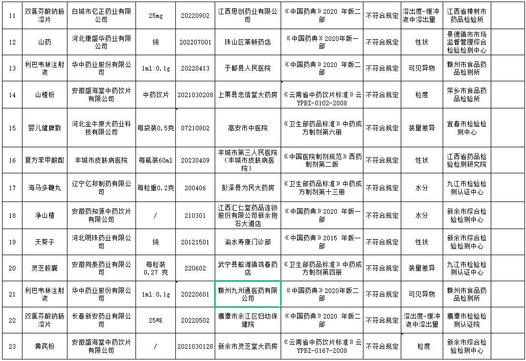 為加強(qiáng)藥品質(zhì)量監(jiān)管,保障公眾用藥安全,根據(jù)《中華人民共和國(guó)藥品管理法》及相關(guān)法律法規(guī)和江西省藥品抽檢計(jì)劃,我省各級(jí)藥品監(jiān)管部門(mén)和檢驗(yàn)機(jī)構(gòu)對(duì)全省藥品生產(chǎn)、經(jīng)營(yíng)和使用單位實(shí)施了監(jiān)督抽檢?,F(xiàn)將本期藥品抽檢信息通報(bào)如下: