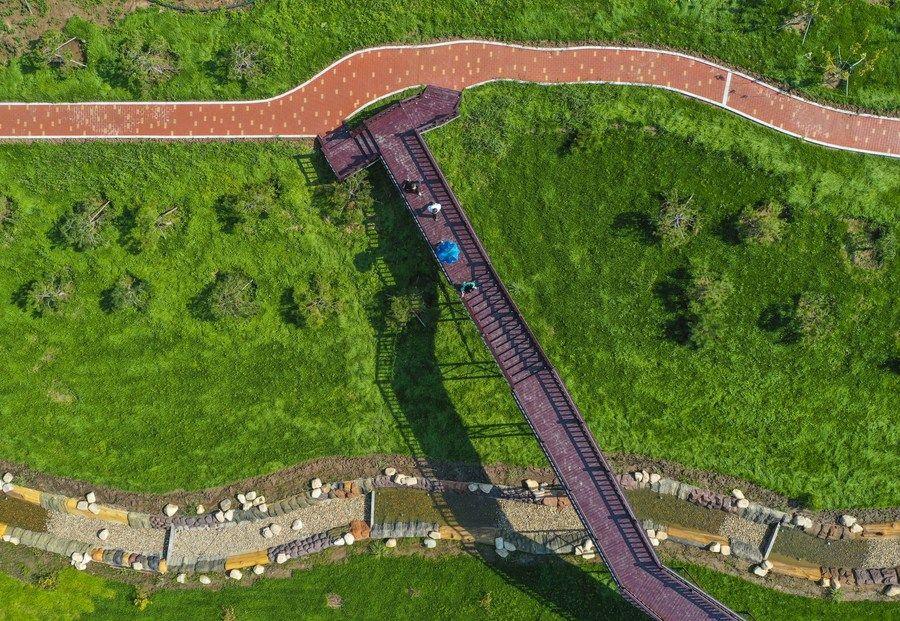 △游人在吉林長春市九臺區(qū)清水村千畝苗木花卉休閑旅游觀光產(chǎn)業(yè)園區(qū)參觀游覽。