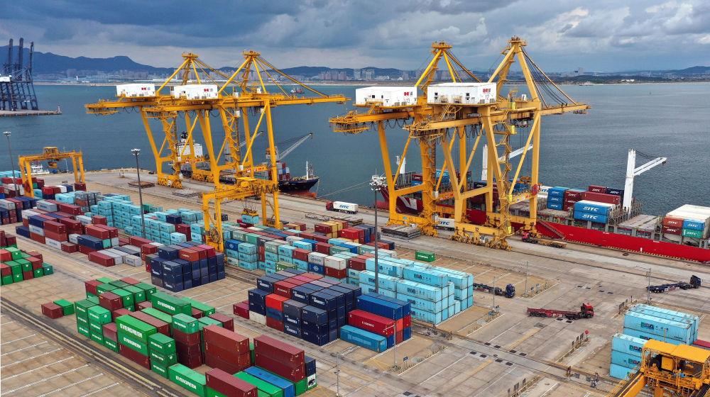 △在遼寧大連市遼寧港口集團大連港集裝箱碼頭,貨輪在裝卸集裝箱。