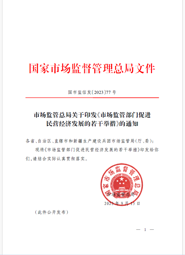 9月18日,市場監(jiān)管總局正式發(fā)布《市場監(jiān)管部門促進(jìn)民營經(jīng)濟(jì)發(fā)展的若干舉措》。這是7月14日《中共中央 國務(wù)院關(guān)于促進(jìn)民營經(jīng)濟(jì)發(fā)展壯大的意見》出臺以來,市場監(jiān)管部門貫徹落實(shí)黨中央、國務(wù)院決策部署出臺的制度舉措,對提振民營經(jīng)濟(jì)發(fā)展信心,依法規(guī)范和引導(dǎo)民營資本健康發(fā)展具有重要意義。