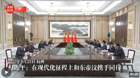 當天,從上午到晚上,習近平主席在杭州會見多位亞洲國家領(lǐng)導人,為國際貴賓舉行歡迎宴會,并同他們共同出席杭州亞運會開幕式。從習主席在會見和致辭時的重要講話,到別具特色的歡迎宴會、精彩紛呈的開幕式,都傳遞了豐富的信息。《時政新聞眼》為你解讀。