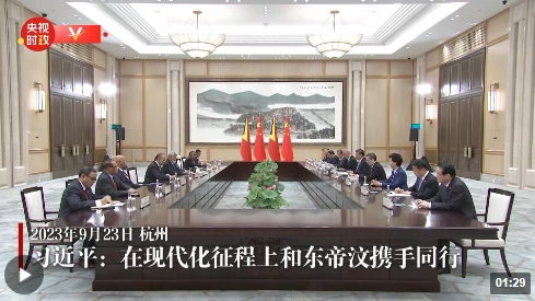 當(dāng)天,從上午到晚上,習(xí)近平主席在杭州會(huì)見多位亞洲國家領(lǐng)導(dǎo)人,為國際貴賓舉行歡迎宴會(huì),并同他們共同出席杭州亞運(yùn)會(huì)開幕式。從習(xí)主席在會(huì)見和致辭時(shí)的重要講話,到別具特色的歡迎宴會(huì)、精彩紛呈的開幕式,都傳遞了豐富的信息?!稌r(shí)政新聞眼》為你解讀。