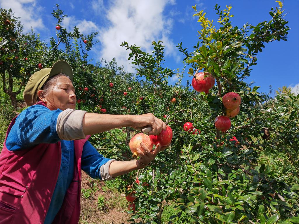 9月19日,會(huì)理市彰冠鎮(zhèn)魁閣村,石榴采摘場(chǎng)景。新華社記者江毅 攝