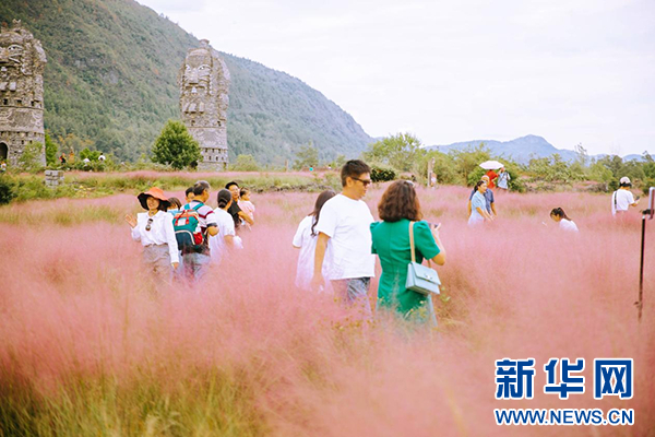 疊石花谷粉黛季拉開(kāi)帷幕,微風(fēng)拂過(guò),輕柔的粉黛花穗隨風(fēng)搖曳,充滿浪漫氣息,與疊石景觀相映成趣,令人流連忘返。景區(qū)在花海中設(shè)置了文案路牌、云朵氣球、尋夢(mèng)秋千等多組網(wǎng)紅打卡裝置,為廣大游客提供花海打卡點(diǎn),樂(lè)享秋日夢(mèng)幻和浪漫,留下旅行的美好回憶。