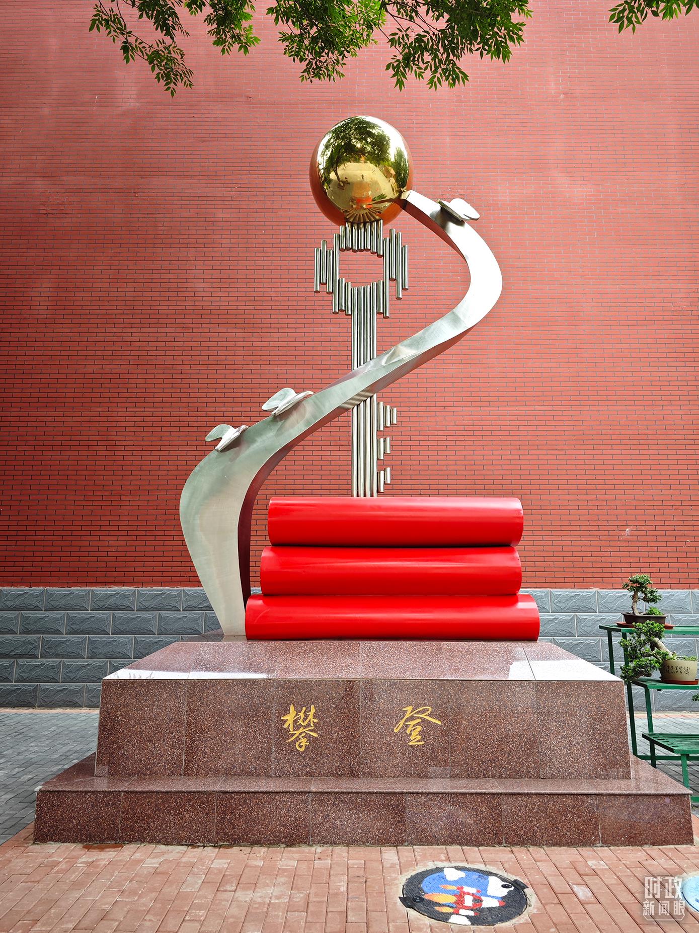 △北京育英學(xué)校內(nèi)的“攀登”雕塑。(總臺(tái)央視記者彭漢明拍攝)