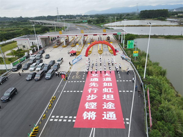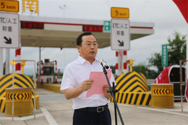 肇慶市副市長(zhǎng)謝桂坤宣布東進(jìn)大道三期工程蓮花南互通立交及收費(fèi)站正式開(kāi)通