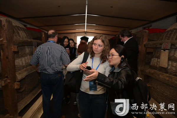 采訪團(tuán)先后參觀了陜西省重點(diǎn)文物保護(hù)單位西鳳酒釀酒舊址,西鳳酒文化館、酒海庫(kù),制酒、制曲、成品包裝車間,體驗(yàn)西鳳酒非遺釀造技藝及絲綢之路酒類運(yùn)輸工藝“酒海”貯存運(yùn)輸,仔細(xì)了解了西鳳美酒的釀造過程,傳統(tǒng)的釀造技藝和獨(dú)有的儲(chǔ)酒容器。大家穿漢服,打卡西鳳酒國(guó)家工業(yè)旅游基地,品味3000年無斷代傳承的醇香味道,對(duì)優(yōu)美的廠區(qū)環(huán)境、現(xiàn)代化的工廠、非遺匠心釀造、國(guó)保大酒海儲(chǔ)存、16999老五甑工藝、智能機(jī)器人應(yīng)用等,表現(xiàn)出濃厚的興趣,并嘖嘖稱贊。
