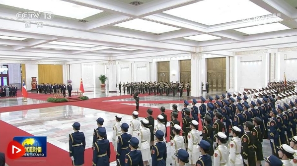 國(guó)家主席習(xí)近平17日上午在人民大會(huì)堂北大廳舉行儀式,歡迎智利共和國(guó)總統(tǒng)加夫列爾·博里奇對(duì)我國(guó)進(jìn)行國(guó)事訪問(wèn)。