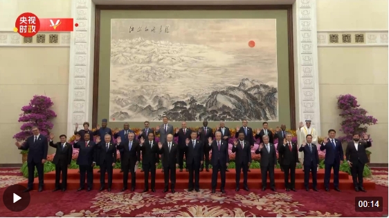 習(xí)近平同出席開幕式的外方領(lǐng)導(dǎo)人集體合影。