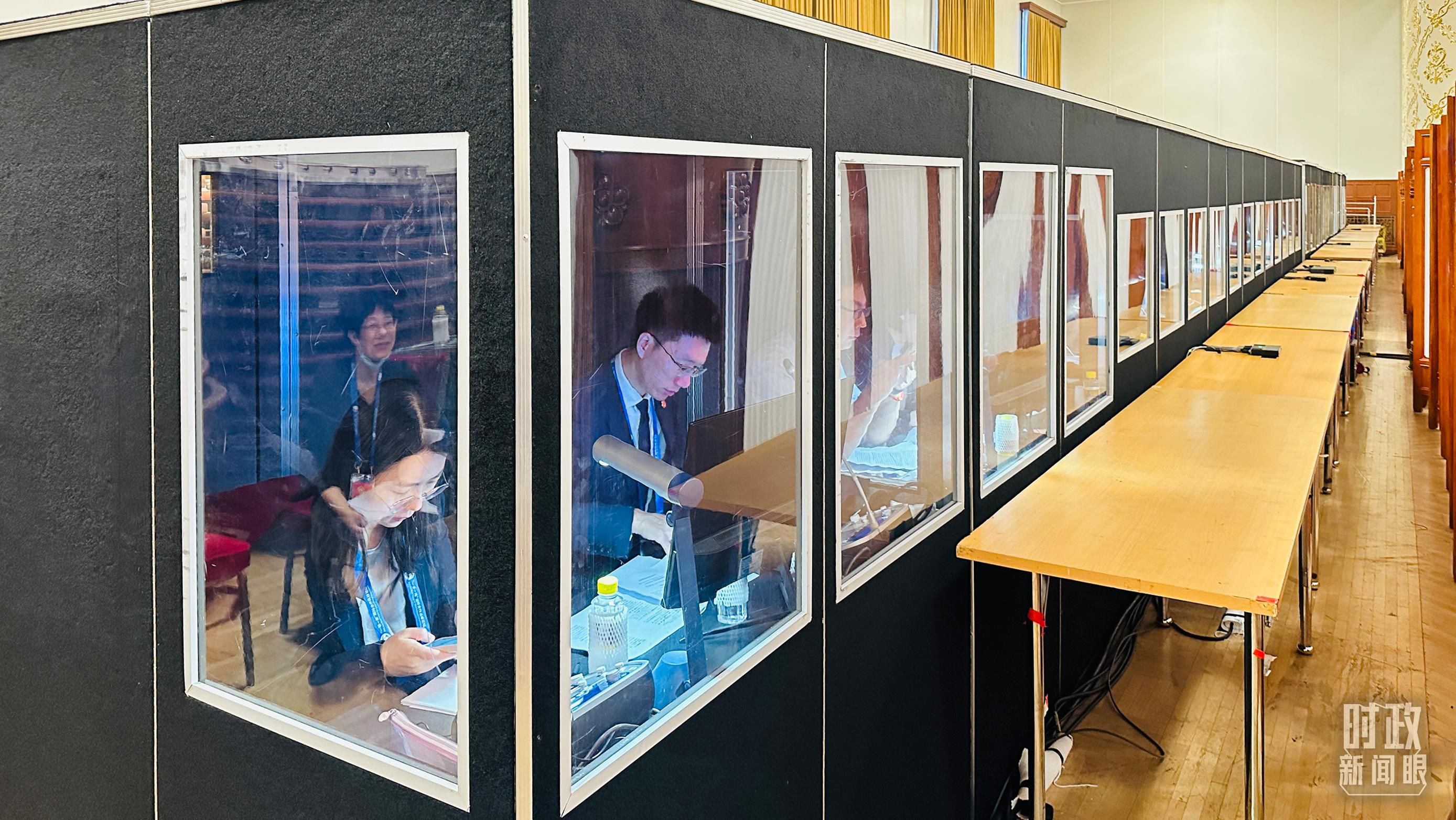 △開幕式現(xiàn)場(chǎng)的多語種同傳間。(總臺(tái)國廣記者時(shí)冉拍攝)