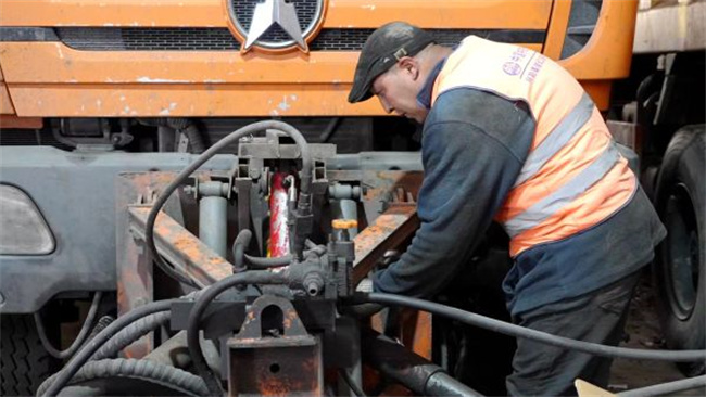 同時,車隊(duì)維修班組也在加緊對所有車輛進(jìn)行全面健康“大體檢”。車庫內(nèi),維護(hù)人員正在對設(shè)備車輛的傳動軸、液壓、制動、電路等進(jìn)行重點(diǎn)保養(yǎng)、檢修,針對老化損壞的線路和設(shè)備零部件進(jìn)行維修更換。