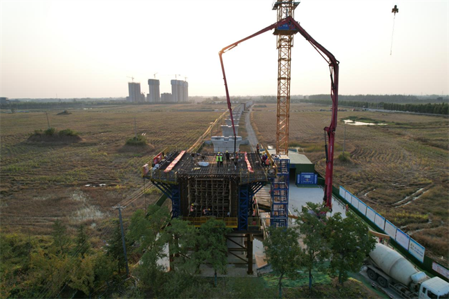 10月16日,在滁州市南譙區(qū)跨京滬高鐵立交特大橋施工現(xiàn)場,隨著最后一車混凝土完成灌注,中鐵一局新建上海至南京至合肥高鐵滬寧合高鐵安徽段站前一標(biāo)跨京滬高鐵立交特大橋(48+80+48m)全線首個連續(xù)梁0#塊混凝土澆筑完畢。