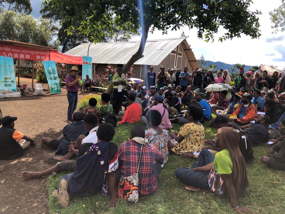 △2020年12月15日,中國專家在巴布亞新幾內(nèi)亞東高地省中國援助巴新菌草和旱稻技術(shù)項(xiàng)目第9期培訓(xùn)班上授課。