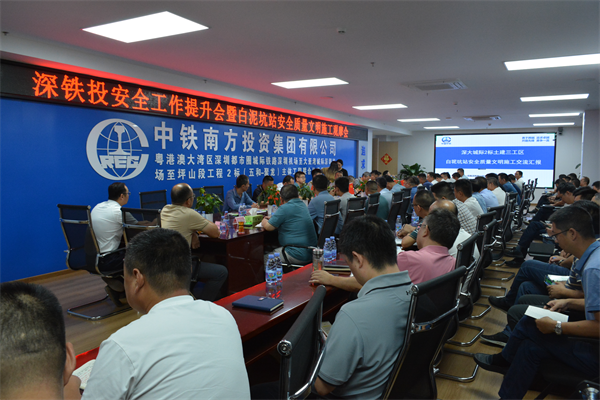 由深鐵投組織的百人安全工作提升觀摩團走進白坭坑站施工現(xiàn)場,圍繞安全管理提升和標準化管理情況實地觀摩。