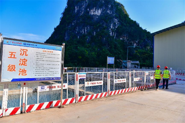 5標(biāo)拌和站還建了一座“五級沉淀池”,與以往的多設(shè)了2級。5標(biāo)項目處在全國著名的旅游勝地廣西桂林,所謂的“桂林山水甲天下”。項目部也因此對拌和站的污水處理也下了一番功夫,在前三級沉淀處理的基礎(chǔ)上,又增設(shè)了“四級、五級沉淀池”,進(jìn)一步去除懸浮顆粒及水中的污泥、雜質(zhì),是濁水變成清水。污水達(dá)到清澈后可以洗車沖洗場地,一方面符合環(huán)保要求,不給景區(qū)添麻煩;一方面是資源的再利用,減少成本支出。