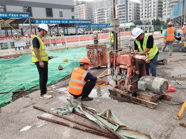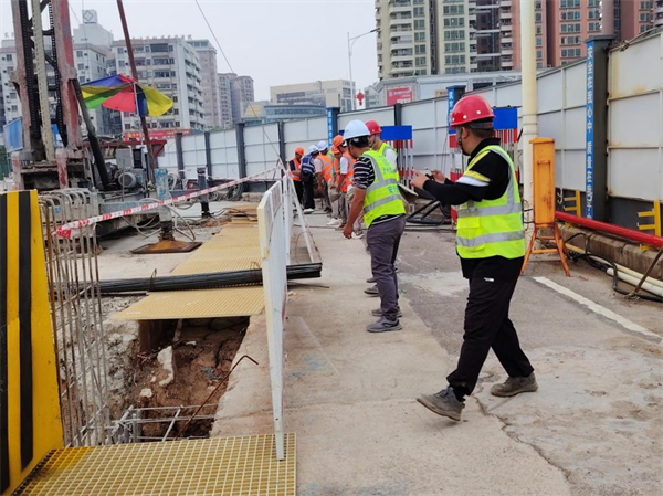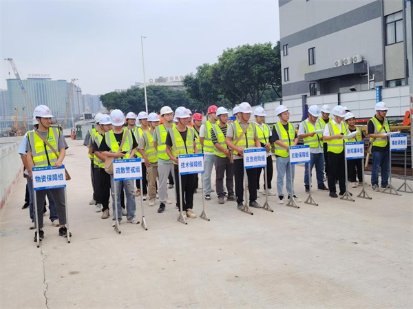 演練模擬項(xiàng)目車站在深基坑土方開挖過程中出現(xiàn)涌水涌泥緊急情況,接到“險情”匯報后,項(xiàng)目負(fù)責(zé)人歐瓊第一時間迅速啟動應(yīng)急預(yù)案,立即組織疏散警戒組人員到達(dá)現(xiàn)場緊急疏散人群,做好警戒,確保搶險道路暢通。應(yīng)急演練從發(fā)現(xiàn)險情、啟動應(yīng)急預(yù)案、應(yīng)急搶險到恢復(fù)正常生產(chǎn)秩序,時長近60分鐘,啟用各類車輛、機(jī)械10多輛(臺)。演練人員聞警而動,各個環(huán)節(jié)緊密銜接,各職能部門密切配合,處置得當(dāng),搶險反應(yīng)迅速,在短時間內(nèi)完成了搶險救援工作,整個演練過程緊張有序,取得了良好的效果。