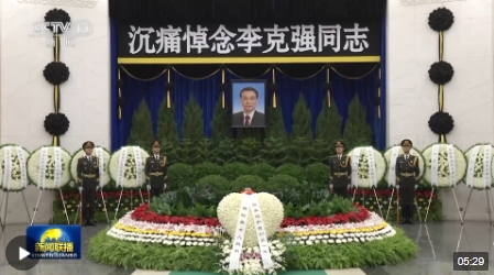 上午9時許,習(xí)近平和夫人彭麗媛,李強、趙樂際、王滬寧、蔡奇、丁薛祥、李希、韓正等,在哀樂聲中緩步來到李克強同志的遺體前肅立默哀,向李克強同志的遺體三鞠躬,并與李克強同志親屬一一握手,表示慰問。胡錦濤送花圈,對李克強同志逝世表示哀悼。