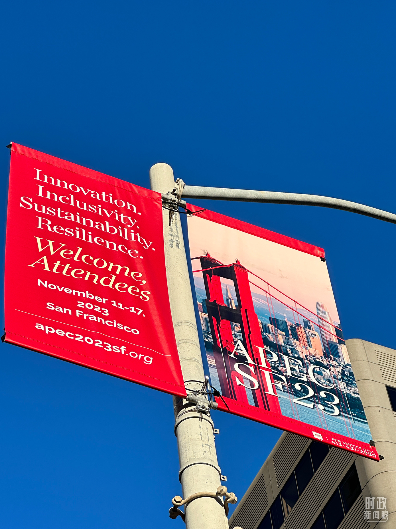 △舊金山街頭,本次APEC會議宣傳語。(總臺國廣記者時冉拍攝)