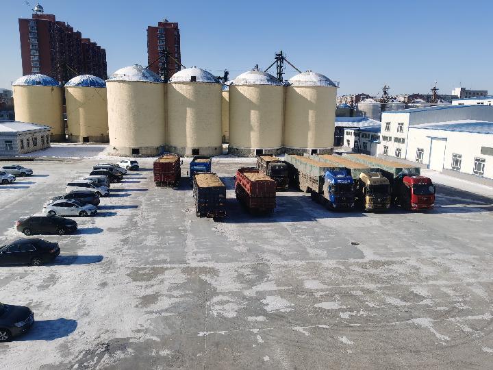 黑龍江立呈大豆蛋白有限公司廠區(qū)內,送糧的車輛等待卸車。新華社記者孫曉宇 攝