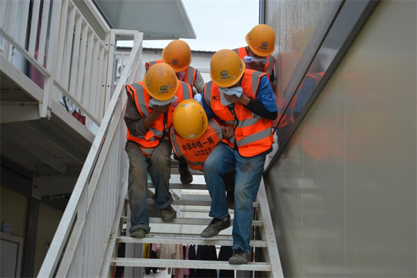 本次演練模擬施工現(xiàn)場電焊作業(yè)不慎點(diǎn)燃易燃材料擠塑板引發(fā)起火,引燃旁邊管理人員宿舍,導(dǎo)致一名人員疏散轉(zhuǎn)移不及時(shí)被困。演練現(xiàn)場設(shè)置了現(xiàn)場搶險(xiǎn)、醫(yī)療救護(hù)、技術(shù)保障、物資設(shè)備保障、安全警戒、后勤保障6個(gè)應(yīng)急小組。隨著總指揮一聲令下,演練人員立即組織人員緊急疏散,對被圍困的二樓作業(yè)人員進(jìn)行救援,同時(shí)組織人員進(jìn)行滅火,參演人員按照既定路線有序逃生,安全到達(dá)指定地點(diǎn)。同時(shí)邀請消防支隊(duì)講解常用的消防器材及滅火設(shè)施。