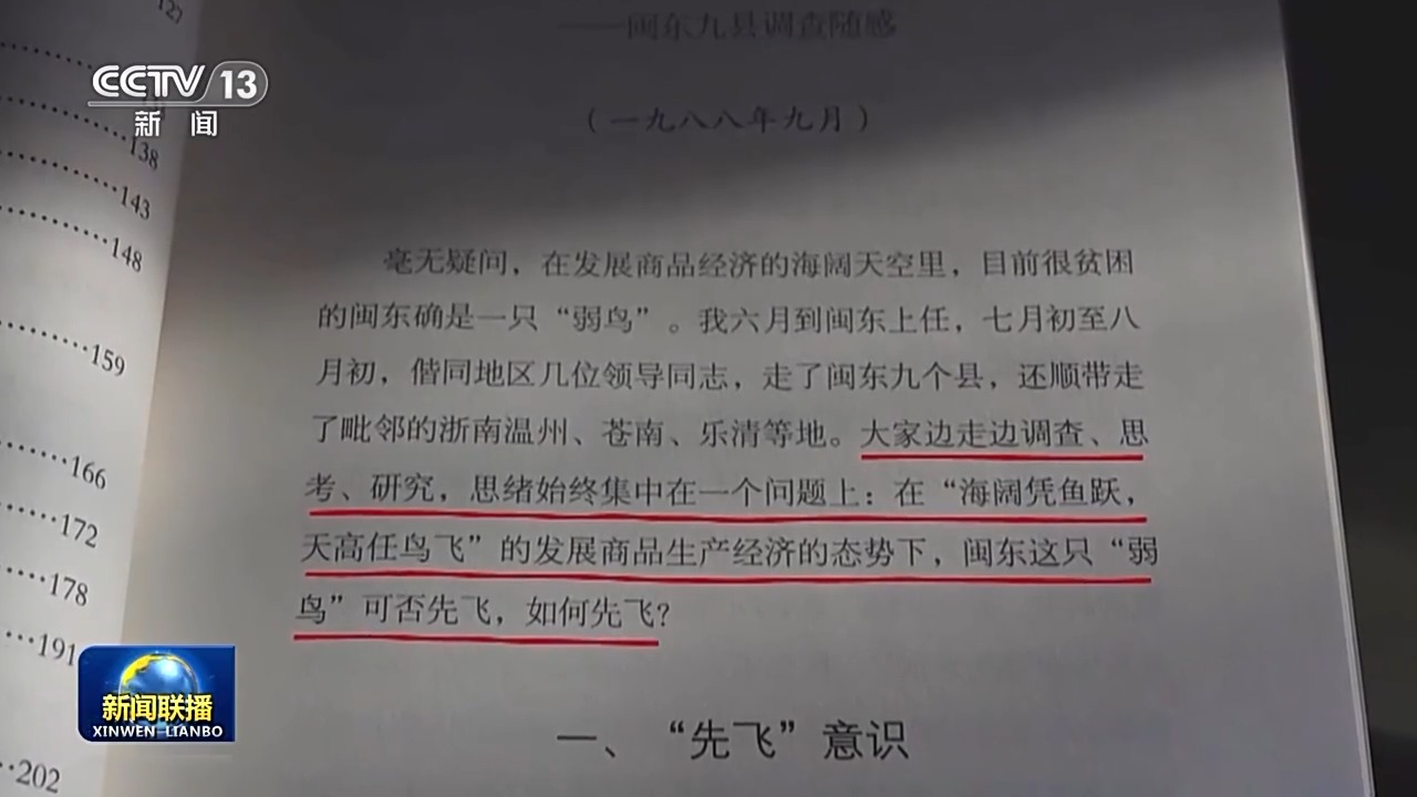 在一個(gè)多月里,習(xí)近平去了古田、屏南等9個(gè)縣的13個(gè)鄉(xiāng)鎮(zhèn)、18個(gè)村。隨后,他在《弱鳥如何先飛》這篇文章里寫道:大家邊走邊調(diào)查、思考、研究,思緒始終集中在一個(gè)問題上,在“海闊憑魚躍,天高任鳥飛”的發(fā)展商品生產(chǎn)經(jīng)濟(jì)的態(tài)勢(shì)下,閩東這只“弱鳥”可否先飛,如何先飛?