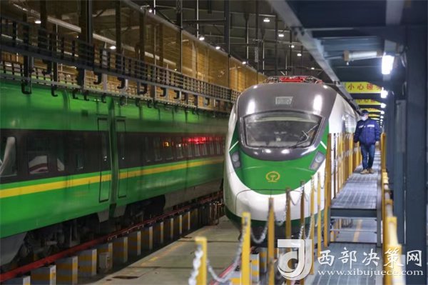 西部決策網(wǎng)訊 12月12日凌晨,伴隨著陣陣鳴笛,CR200J3-C新一代長編組臥鋪動(dòng)集動(dòng)車組列車駛?cè)胫袊F路蘭州局蘭州車輛段客車整備場,這是該新型動(dòng)車組首次亮相甘肅,也標(biāo)志著該動(dòng)車組在中國鐵路蘭州局上線運(yùn)營進(jìn)入倒計(jì)時(shí)。