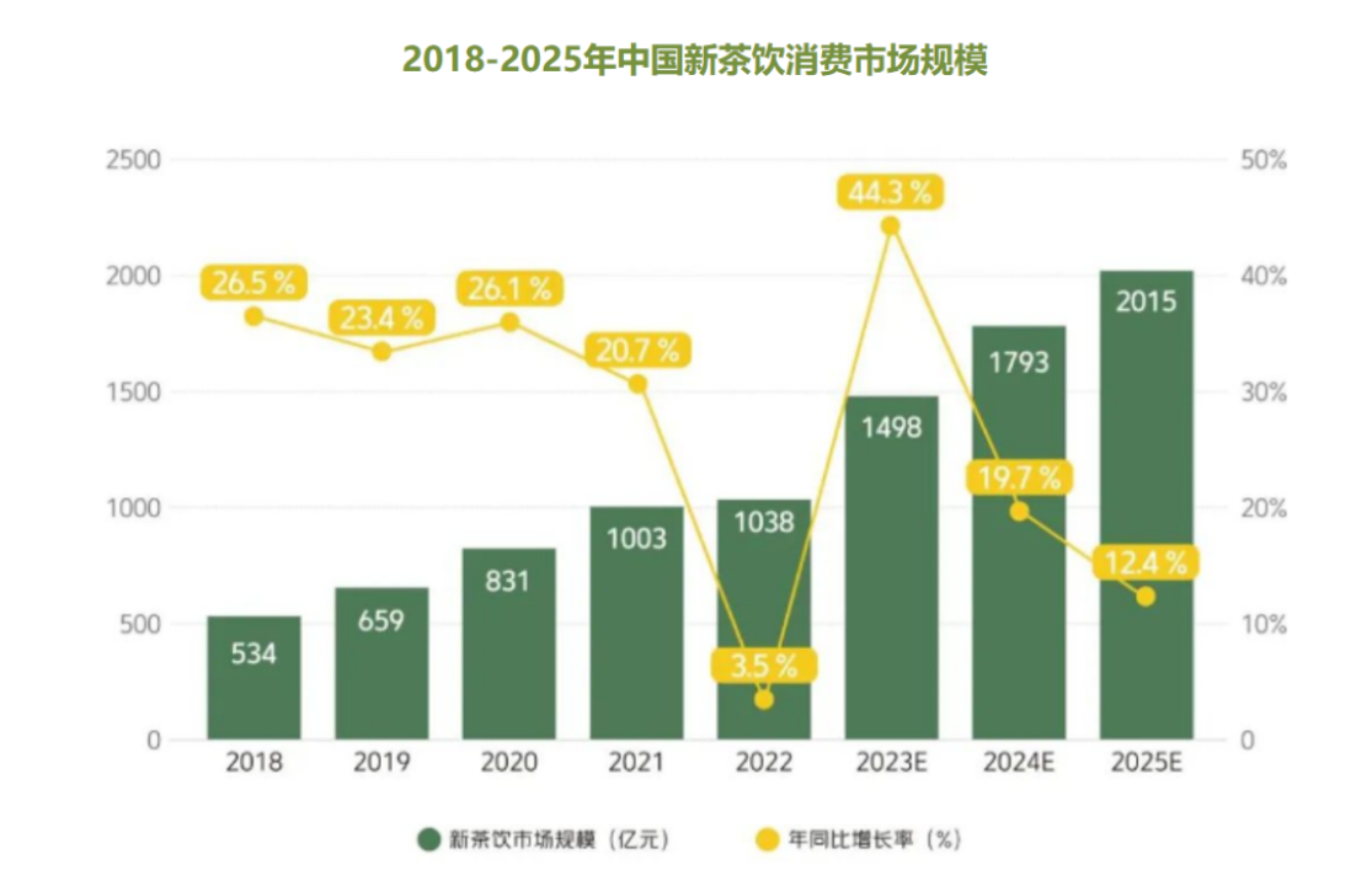 近年來(lái),新式茶飲行業(yè)規(guī)模不斷擴(kuò)大。中國(guó)連鎖經(jīng)營(yíng)協(xié)會(huì)與美團(tuán)聯(lián)合發(fā)布的《2023新茶飲研究報(bào)告》顯示,2023年全年新茶飲消費(fèi)市場(chǎng)規(guī)模預(yù)計(jì)達(dá)到1498億元,且此后將進(jìn)一步保持增長(zhǎng)。據(jù)不完全統(tǒng)計(jì),2023年8月31日在業(yè)的新茶飲門(mén)店總數(shù)約51.5萬(wàn)家,與2020年年底相比增長(zhǎng)超36%。據(jù)美團(tuán)數(shù)據(jù),2023年上半年,美團(tuán)平臺(tái)新茶飲外賣用戶達(dá)到1.78億人,比去年同期增長(zhǎng)了20.3%。興業(yè)證券研報(bào)分析稱,新式茶飲行業(yè)市場(chǎng)規(guī)模巨大、前景廣闊,新茶飲消費(fèi)走向常態(tài)化。