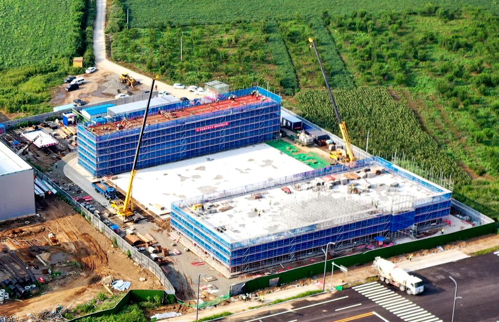 在沈陽市鐵西區(qū)拍攝的德國賀利氏特種光源項目建設(shè)現(xiàn)場(2023年8月28日攝,無人機(jī)照片)。新華社記者楊青 攝