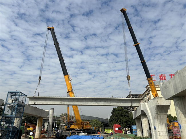 12月26日,中鐵一局佛山市南海區(qū)有軌電車項(xiàng)目重要施工部位佛山一環(huán)跨線橋左幅首片25米箱梁Z10-1#內(nèi)邊梁順利架設(shè),標(biāo)志著該工程正式啟動(dòng)橋梁上部結(jié)構(gòu)施工,為施工進(jìn)度按下了“加速鍵”。