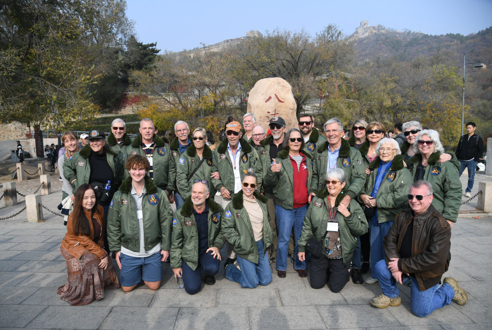 2023年10月29日,飛虎隊(duì)老兵莫耶一行人在北京八達(dá)嶺長城合影留念。當(dāng)日,美中航空遺產(chǎn)基金會(huì)訪華代表團(tuán)成員陸續(xù)抵達(dá)北京。新華社記者 任超 攝
