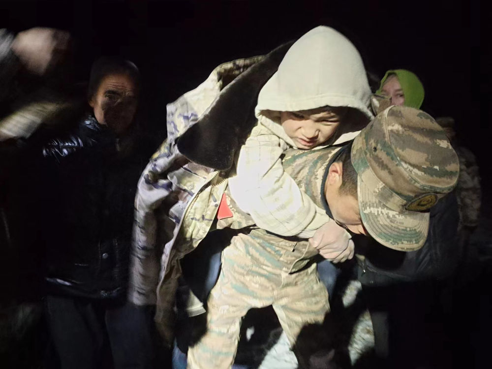 2023年12月19日,武警甘肅總隊(duì)臨夏支隊(duì)官兵在甘肅省臨夏回族自治州積石山縣劉集鄉(xiāng)陽(yáng)屲村展開(kāi)救援。新華社發(fā)(侯崇慧 攝)