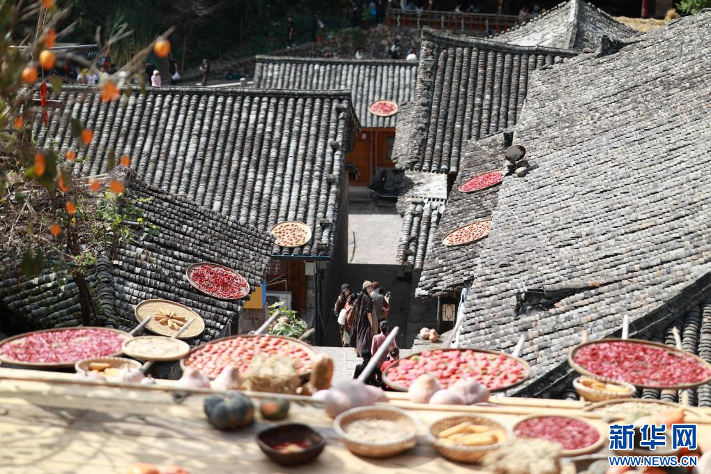 火紅的辣椒、金黃的玉米、褐紅的柿餅、橙紅的南瓜片……從2023年11月起,浙江省永嘉縣巖坦鎮(zhèn)林坑村家家戶戶的房前屋后、屋頂窗臺,均曬著五彩斑斕的農(nóng)作物,在陽光的照耀下光彩奪目。這一傳統(tǒng)農(nóng)俗被稱為“曬秋”,將持續(xù)到2024年1月。