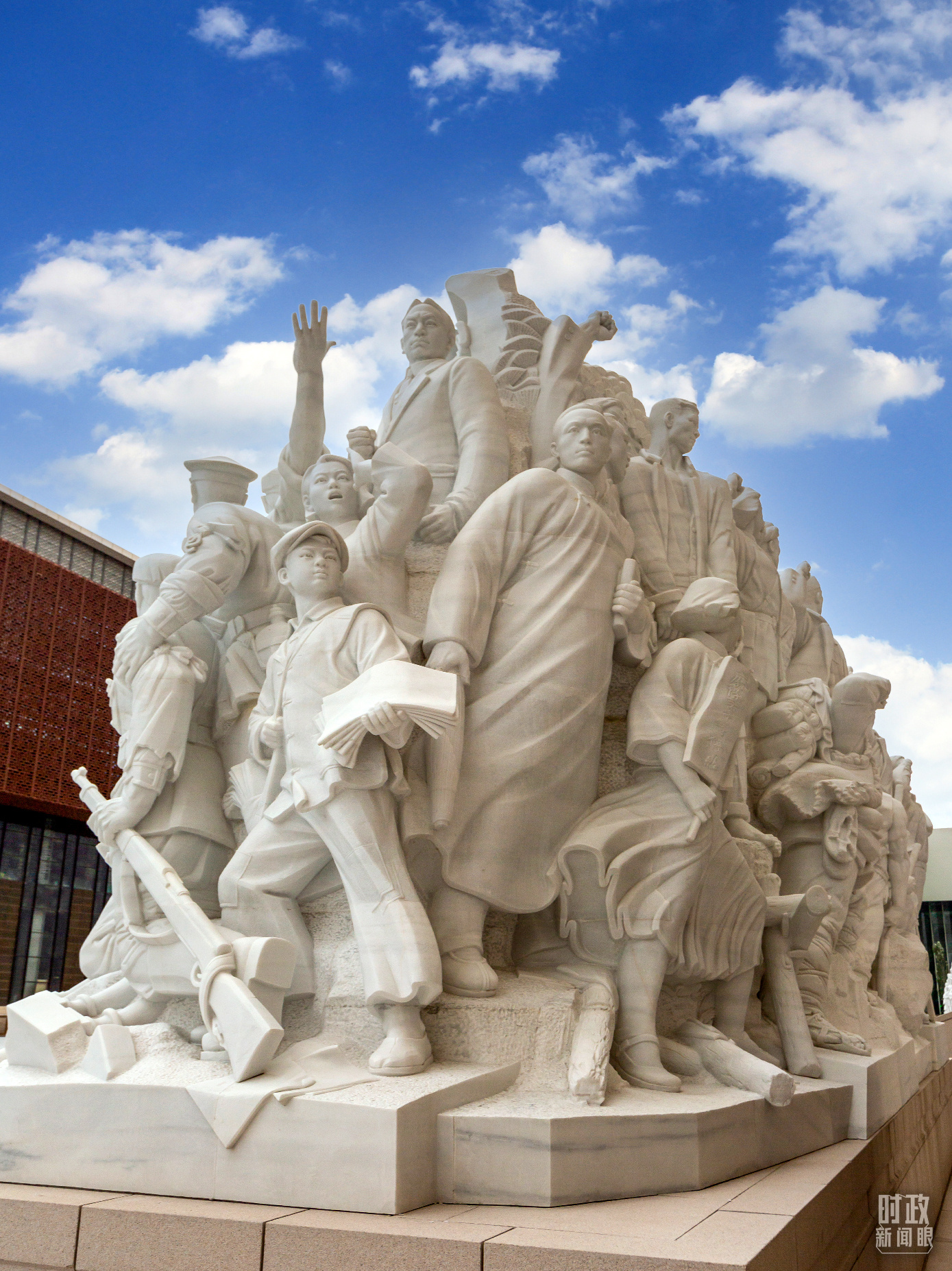 中國(guó)共產(chǎn)黨歷史展覽館前的主題雕塑《信仰》。(圖/視覺中國(guó))