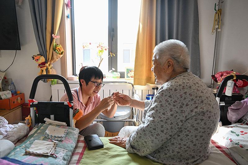 △2023年10月17日,工作人員在天津市河西區(qū)越秀路街道居家養(yǎng)老服務(wù)中心為老年人服務(wù)。