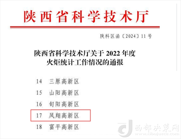 西部決策網(wǎng)訊 近日,陜西省科技廳下發(fā)了2022年度火炬統(tǒng)計工作情況的《通報》,鳳翔高新區(qū)在火炬統(tǒng)計工作中完成任務及時、填報審核嚴格、工作成效突出,被省科技廳通報表揚,這已經(jīng)是鳳翔高新區(qū)連續(xù)四年獲通報表揚。