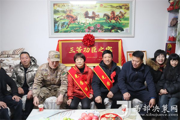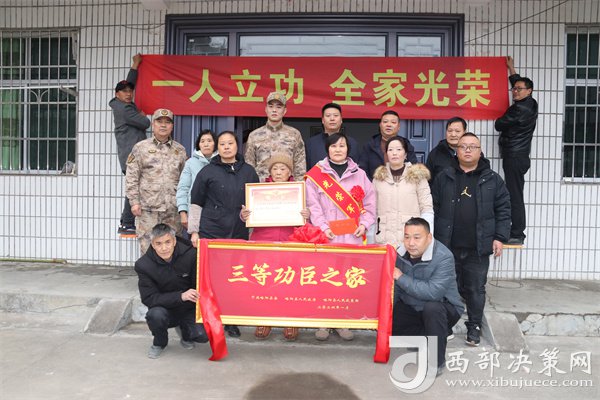 西部決策網(wǎng)訊 鞭炮禮花鋪天蓋地,大街小巷喜氣洋洋。由略陽(yáng)縣人武部、退役軍人事務(wù)局以及鎮(zhèn)村領(lǐng)導(dǎo)組成的隊(duì)伍,正在為榮獲三等功的伍興虎、王瑤家庭送來(lái)立功受獎(jiǎng)的喜報(bào)和三等功臣牌匾。軍地領(lǐng)導(dǎo)帶著問(wèn)候與祝福,為家屬們帶紅花、披綬帶,并送上慰問(wèn)金。
