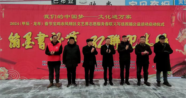 西部決策網(wǎng)訊(記者劉玉 韓宗憲 通訊員 閆芝羽)2月2日,“我們的中國夢·文化進萬家”——2024春節(jié)寶雞市鳳翔區(qū)文藝界志愿服務(wù)春聯(lián)義寫送祝福公益活動啟動儀式在區(qū)政府大門西側(cè)廣場舉行,區(qū)委常委、宣傳部部長賈亞斌出席活動啟動儀式。