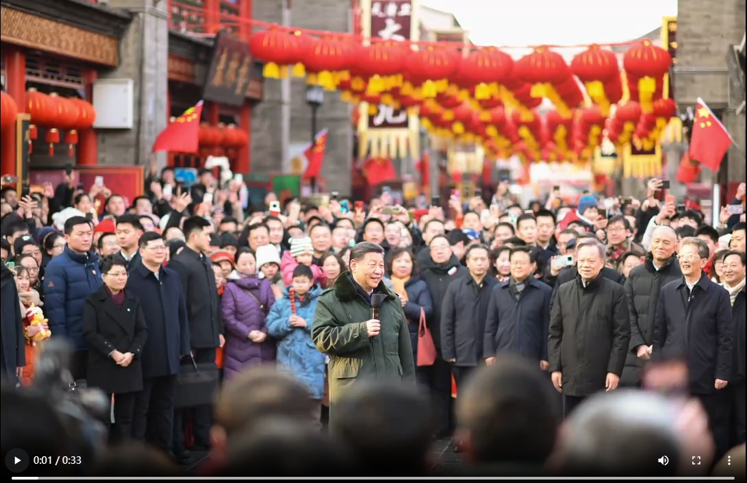 中華民族傳統(tǒng)節(jié)日春節(jié)即將到來(lái)之際,中共中央總書記、國(guó)家主席、中央軍委主席習(xí)近平來(lái)到天津,看望慰問基層干部群眾,向全國(guó)各族人民和香港同胞、澳門同胞、臺(tái)灣同胞、海外僑胞拜年!