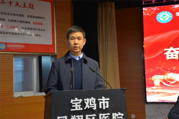 鳳翔區(qū)衛(wèi)健局黨組書記、局長張建峰對2023年醫(yī)院的學科建設、三級醫(yī)院創(chuàng)建、醫(yī)療服務能力提升、醫(yī)院綜合管理、重點項目建設等工作成績給予充分肯定和高度贊揚,并對醫(yī)院下一步發(fā)展提出了指導性意見。他指出,區(qū)醫(yī)院要緊扣中心工作,推動醫(yī)院各項事業(yè)高質量發(fā)展,要抓好項目建設,在服務能力上實現(xiàn)新突破,要強化人才隊伍建設,激發(fā)職工干事創(chuàng)業(yè)激情,要鼓勵資源下沉,助推緊密型醫(yī)共體建設。希望鳳翔區(qū)醫(yī)院全體干部職工同心同德,砥礪奮進,為推動鳳翔衛(wèi)生健康事業(yè)高質量發(fā)展再做貢獻、再立新功。