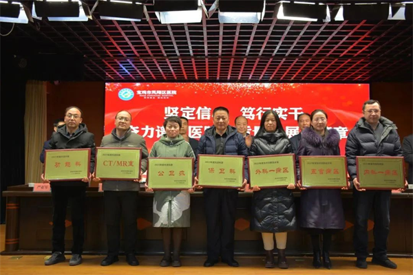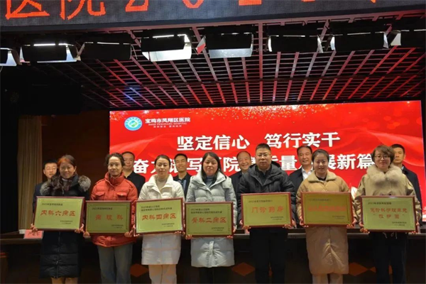 院長韋灝作了《鳳翔區(qū)醫(yī)院2023年工作總結暨2024年工作計劃》的報告,從醫(yī)療業(yè)務提升、重點項目建設、醫(yī)療服務環(huán)境改善、醫(yī)院綜合管理、黨建工作推進、平安醫(yī)院建設等六個方面進行了系統(tǒng)全面總結,向獲得表彰獎勵先進科室及先進個人表示祝賀,并安排了2024年全年工作任務。